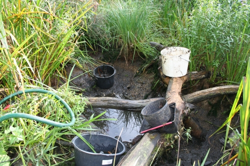Bodenschlamm aus dem Tiefbereich des Schildkrötenteiches zu entfernen.